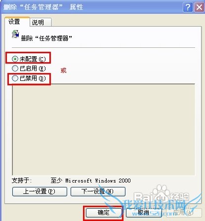 3.双击打开,在设置选项卡里选中“未配置”或“已禁用”,按确定即可。