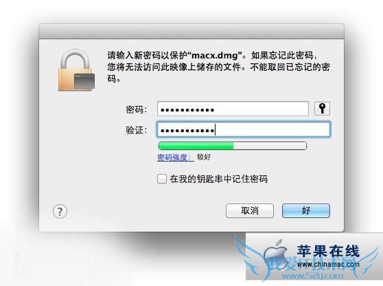 5、设置密码,记得把下面在钥匙串记住密码的对号去掉