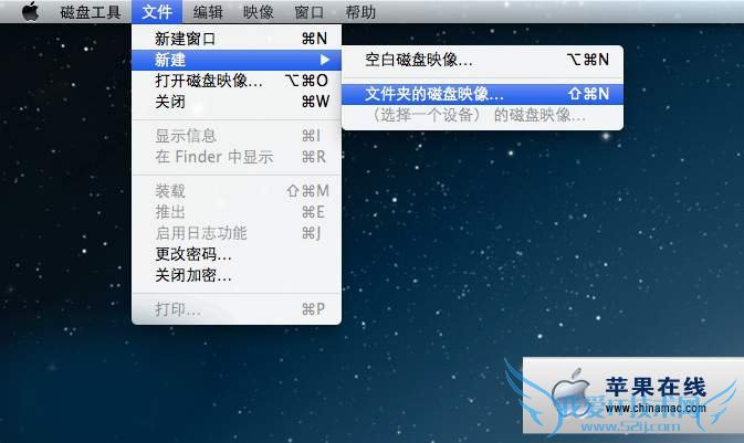 2、在左上角 [文件]下拉菜单——新建——文件夹的磁盘映像