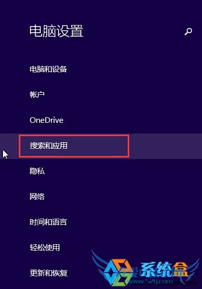 2、然后在电脑设置下方的众多选项中,点击“搜索和应用”;