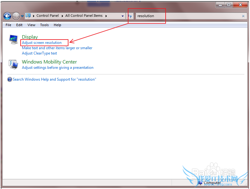 说这么多,让我们实际干点事情吧。比如我想改变屏幕分辨率,那么我只用在控制面板右上角的搜索输入框中输入:resolution。就可以进行配置啦,是不是很方便呢?快来试试吧