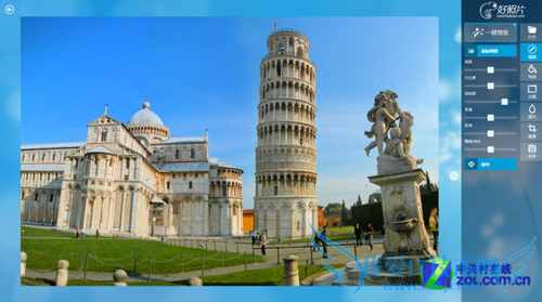好照片的设计界面完全配合Win8的简洁自然的特点,用户可以非常快地上手熟练操作,各项功能的入口一目了然。基础编辑方面,亮度、对比度、饱和度、色温、色调、模糊/锐化等功能提供了简单实用的快捷图像处理全套服务。