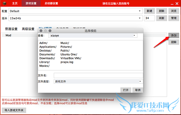 第三步:找到你MOD所在的地方,然后点击MOD最后在点击打开便可添加