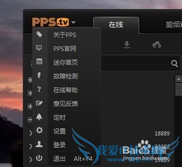 在左上端点击倒三角,也就是pps.tv边上的标志。