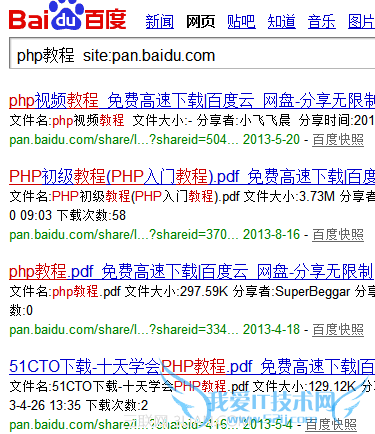 欢迎您访问我爱IT技术网,今天小编为你分享的电脑教程是日常使用电脑方面的电脑常识:如何用百度搜索云盘分享的资料,学会并运用这些电脑常识,让你快速玩转电脑及互联网方面的知识,下面是详细的分享!