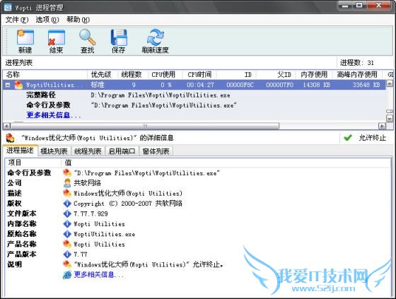 欢迎您访问我爱IT技术网,今天小编为你分享的电脑教程是日常使用电脑方面的电脑常识:优化大师进程管理大师,学会并运用这些电脑常识,让你快速玩转电脑及互联网方面的知识,下面是详细的分享!