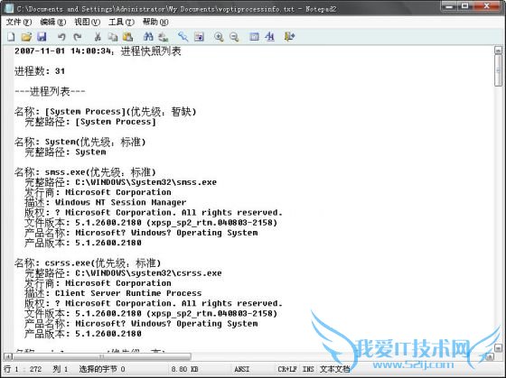点击“保存”,生成一个文本文件,方便您查看进程信息。