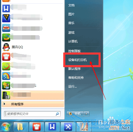 在开始界面中找到设备和打印机选项(XP电脑设备和打印机选项在这有可能不能直接看见需要进入控制面板才能找到),点击进入