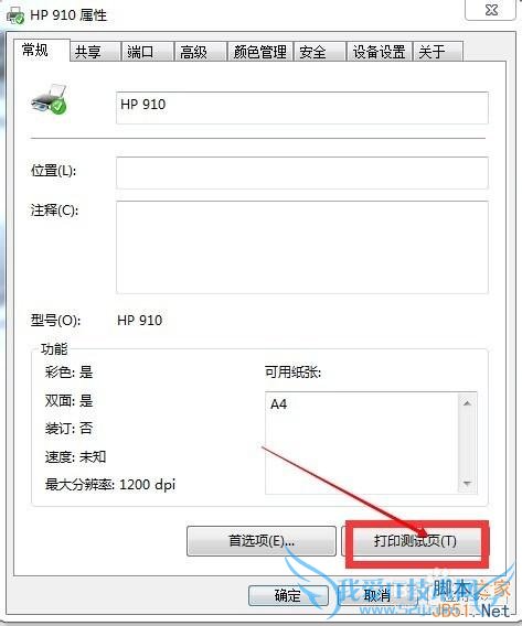 可以看到如图界面,鼠标左键点击打印测试页,看看打印机是否能正常打印。