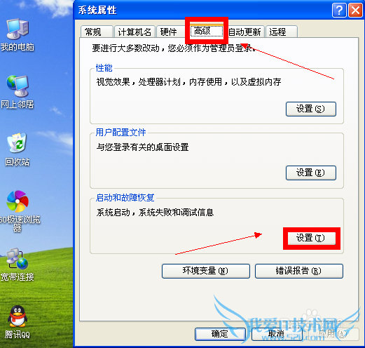 在“高级”页面的“启动和故障恢复”下面有“设置”选项,鼠标左键点击进入设置。