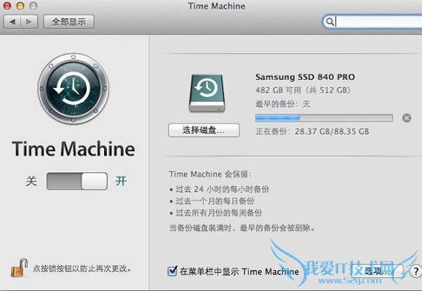 通常来说,升级Mac OS系统不会出现什么问题,但为了预防万一,我们最好还是先使用NB的Time Machine备份一下整个系统,方便出错的时候恢复,如下图所示: