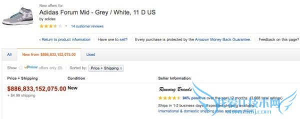 一双普通的板鞋,由于亚马逊的Bug,显示了不合理的价格,目前已经修改回去了。但是截图保留着。