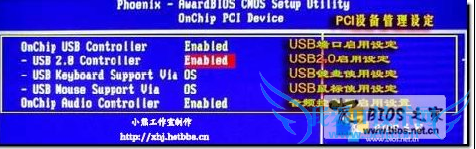 然后 进入 OnChip PCI Device(PCI设备设定),可以设置USB参数。定义分别是: