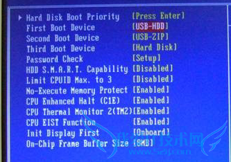 关于第一启动,从下图大家可以看到USB-HDD/USB-ZIP/HARD-DISK