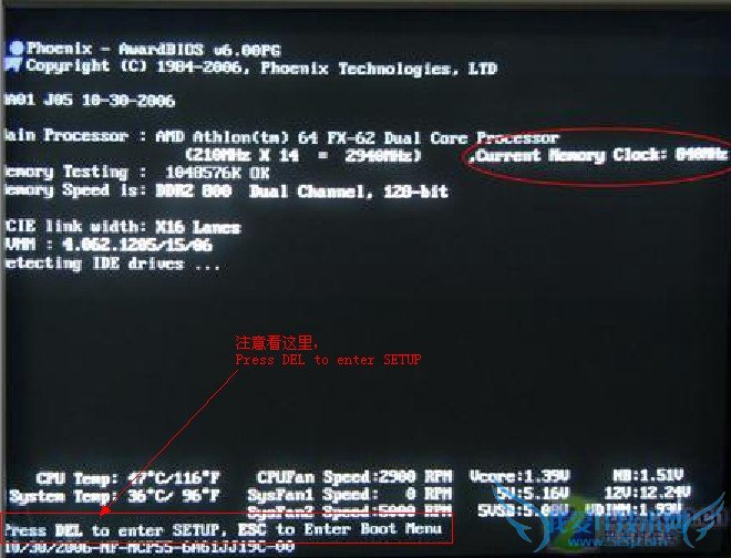 从上图可以看到,显示了提示信息“Press DEL to enter SETUP”,