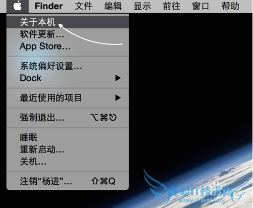 1、由于 MacBook Pro 或 Air 都会内置一块电池,在使用过程会经常为电池充放电,并且电池有忘记功能。我们可以先查看电池的使用次数,从这里着手,看看当前笔记本是否为翻新机。进入 Mac 系统以后,请点击屏幕左上角的苹果图标,再点击“关于本机”选项,如图所示