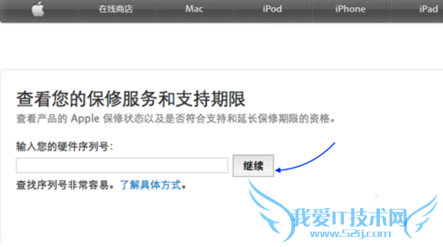 2、接着请打开苹果官网的机器序列号查询页面地址:https://selfsolve.apple.com/agreementWarrantyDynamic.do?