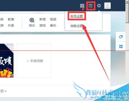 2、点击右上角的 设置 选项中的 账号设置选项。