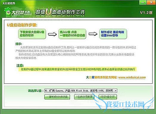大白菜超级U盘启动盘制作工具,是纯傻瓜式制作的一键u盘装系统的超级万能王,U盘制作成功率几乎高达100%,试验过上百种U盘,目前没有遇到一例失败.