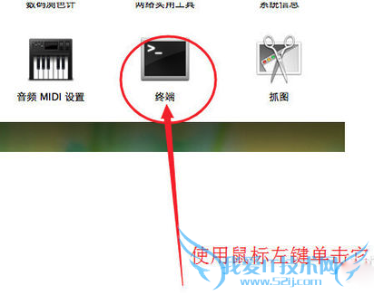 3、一般情况下,在【实用工具】中的工具列表里面的倒数第二个就是终端,可能你电脑里面该工具的位置与我的不一样,但是都叫【终端】!