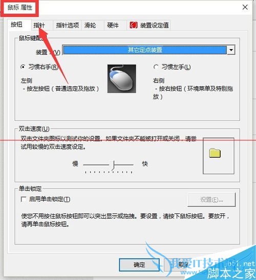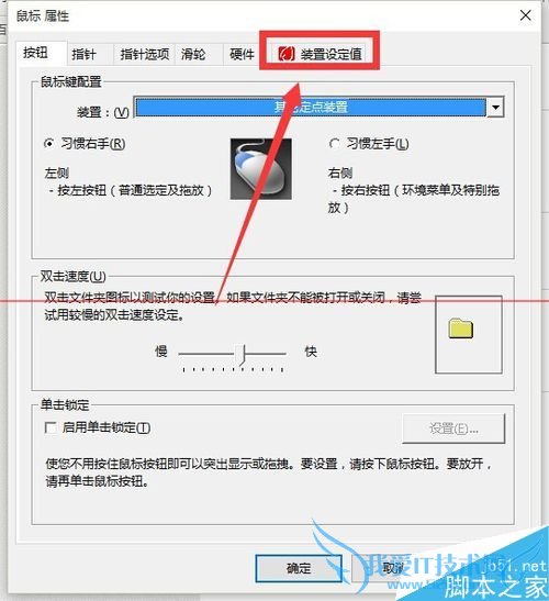 2、在【鼠标属性】面板,找到【装置设定值】选项,如图