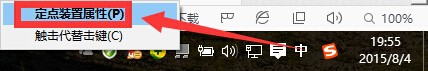 1、找到【任务栏】上的【触摸板】图标,然后,鼠标右键【点击】,找到【定点装置属性】,打开【鼠标属性】面板,如图