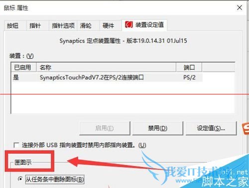 怎么去掉笔记本任务栏显示的触摸板图标?