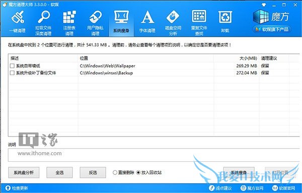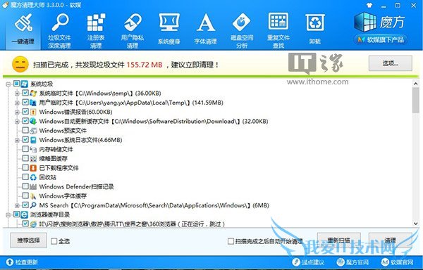 2、分析了系统盘的磁盘情况后,对大文件或者文件占用的情况也知晓了,接下来开始系统盘的瘦身操作。比如系统瘦身工具,安全删除可清理的系统文件。
