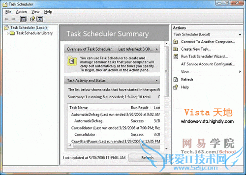 在Windows vista中,微软对自Windows 98以来一直未做大的调整的任务计划(Task Scheduler)工具做了较大调整,使用户在Windows Vista中的任务调度更加直观、简单且高效。
