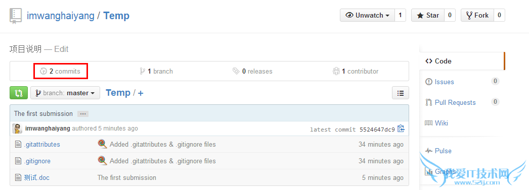 同步完之后在浏览器中查看,这时项目的提交次数已经变成了”2“,如下图所示: