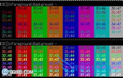 30(黑色)、31(红色)、32(绿色)、 33(黄色)、34(蓝色)、35(洋红)、36(青色)、37(白色)。