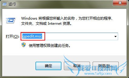 2、在运行窗口中输入“gpedit.msc”指令,按下回车键确认,如下图所示:
