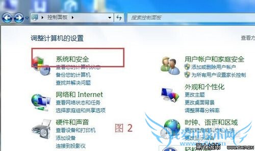 2、打开控制面板,点击“系统和安全”,打开对话框。如图2