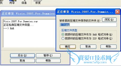 3、设定好后点击"确定",WinRAR就会开始对受损的压缩文件进行修复,并会以对话框的形式显示修复的全过程。