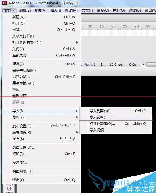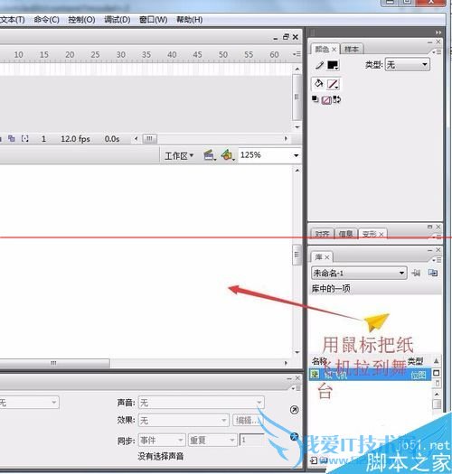 1、首先我们先把一个素材纸飞机导入到库,备用