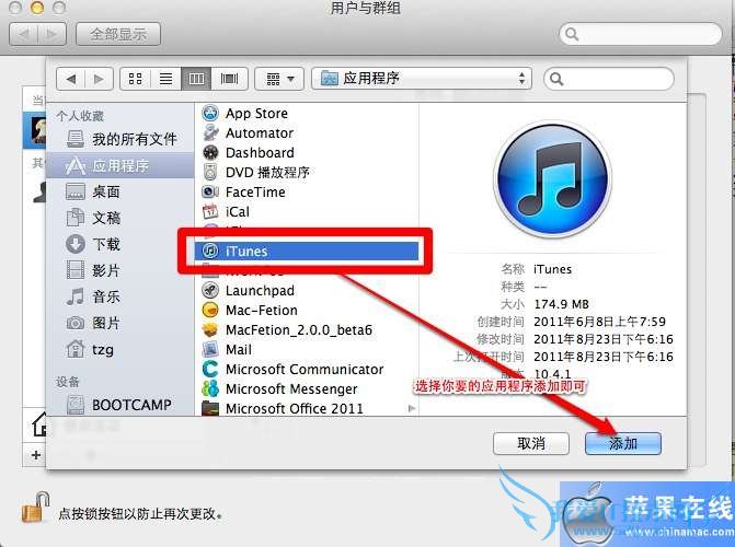 3点击下面的“+”号,再选择你要的应用程序,点击添加就可以了。