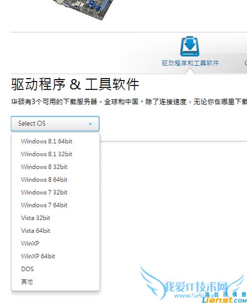 2、 点击"驱动程序与工具软件",然后选择你的操作系统