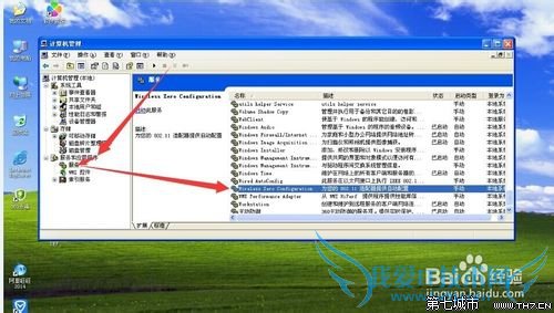 2、在“计算机管理”窗口展开“服务和应用程序”。在服务列表中找到“Wireless Zero Configuration”服务。