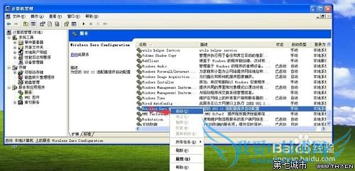 3、右键“Wireless Zero Configuration”服务,选择启动。