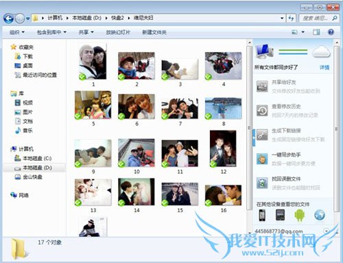 浪漫教程:1、将两人的各种亲密照放入金山快盘的电脑客户端中,同步完成后,照片的左下角就会出现绿色的对勾标志,说明这些图片已经同步到快盘的服务器中了;