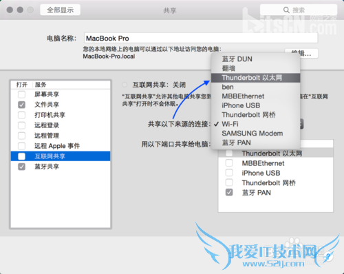 注:如果你的Mac是用有线拨号上网的话,请选择PPOE作为共享源。
