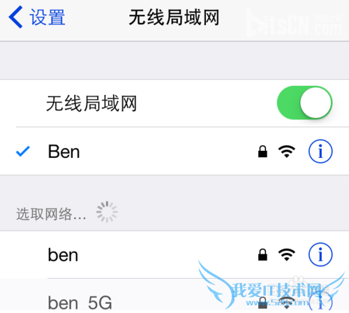 接下来我们用其它设备来尝试用 Mac 共享的 Wifi 热点,这里以 iPhone 为例,在无线列表中可以看到 Mac 设置的无线热点,那个以大写 B 开头的无线就是。