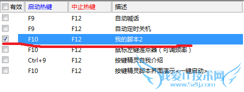 保存并确认没有出错信息后,我们就可以关闭该窗口,软件会自动切换到主界面,我们就能看到我们新编写的那个脚本,并且有默认的热键,如下图所示: