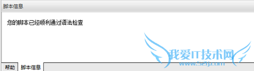 写完命令后,点击左上角的“保存”,在下方的“脚本信息”处,就能看到命令是否有错,如下图所示,很显然,我编写的这条命令是没有错的。