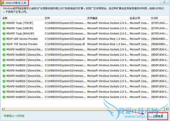 欢迎您访问我爱IT技术网,今天小编为你分享的电脑教程是日常使用电脑方面的电脑常识:lsp修复工具解析,学会并运用这些电脑常识,让你快速玩转电脑及互联网方面的知识,下面是详细的分享!