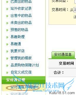 1. 进入我的易趣,点“安付通账户明细”(见下图)。