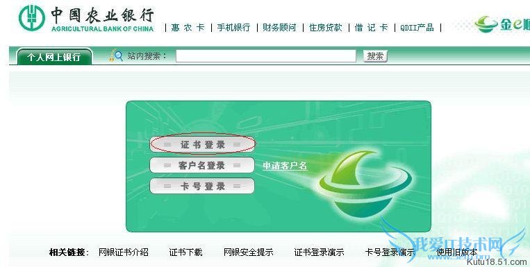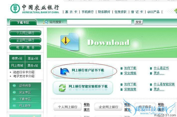 4. 点击“红圈处‘网上银行客户证书下载’”(见下图)。