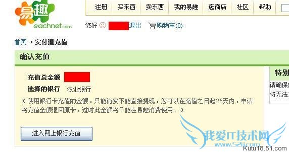 一. 用K宝把钱充值到易趣付款工具(安付通)
