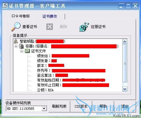 3. 点查看证书。如果看到下图里的类似信息,说明证书已经下到K宝。