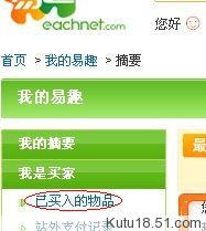 1. 进入“我的易趣”点“已买入的物品”(见下图)。
